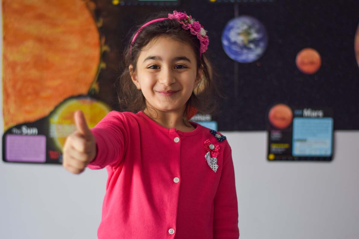 Fatima likes to read, draw and play with her friends. She is still working on her Turkish language skills, and wants to pursue her ambition of becoming a dentist in the future.
